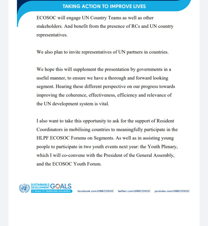 HLPF ECOSOC Forums on Segments. Serta dalam membantu anak muda